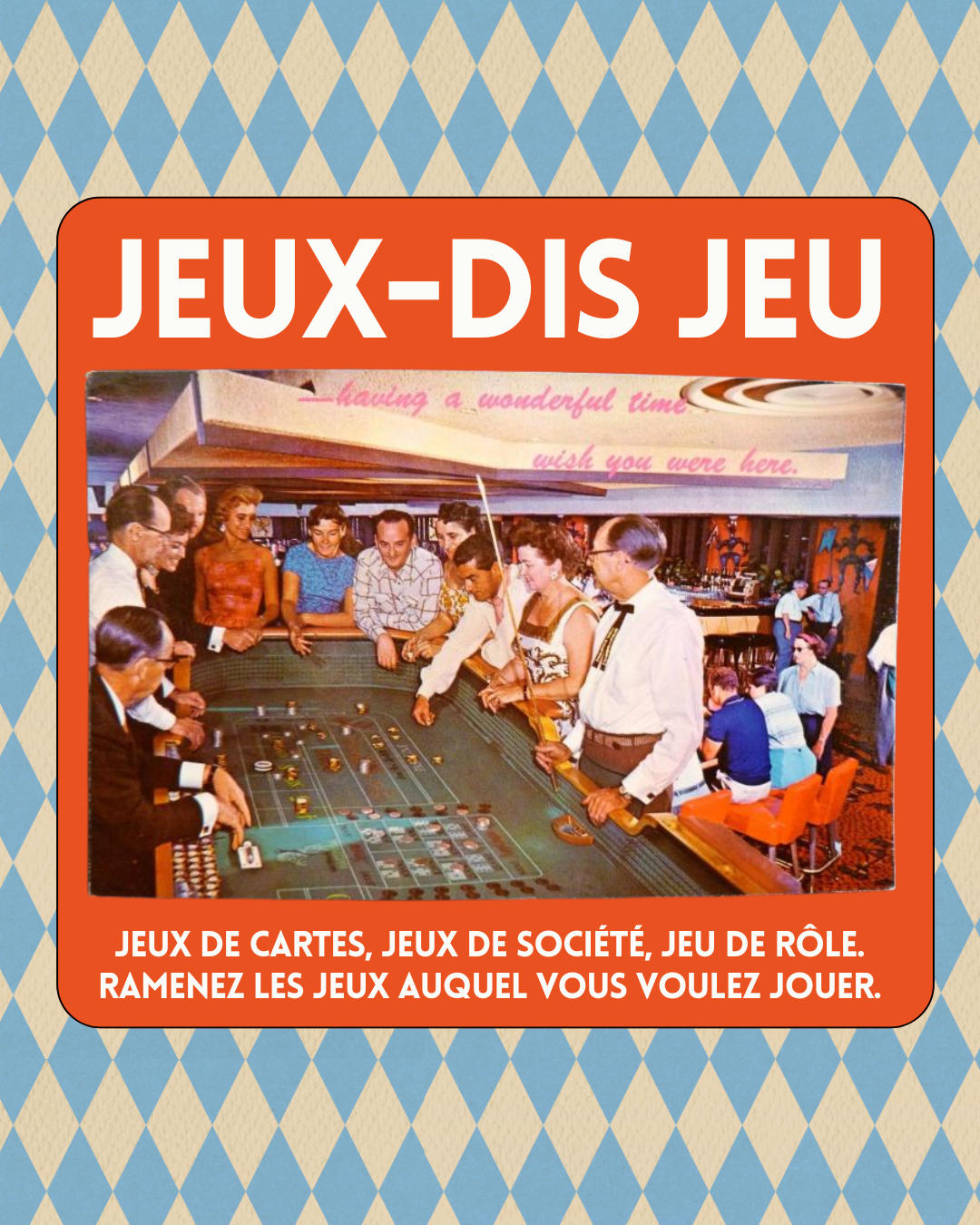 Jeux de cartes, jeux de société, jeu de rôle. Ramenez les jeux auquel vous voulez jouer.